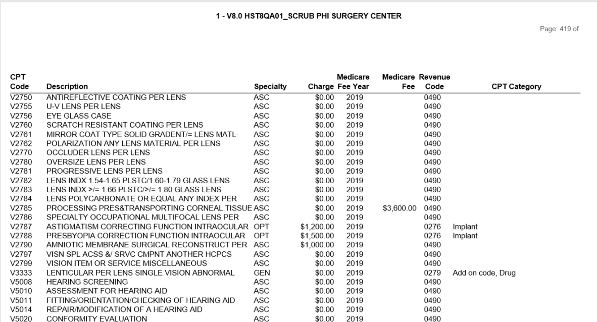 Track all CPT codes entered into HST Practice Management.  Reads directly off the CPT Code table under the Administration menu.