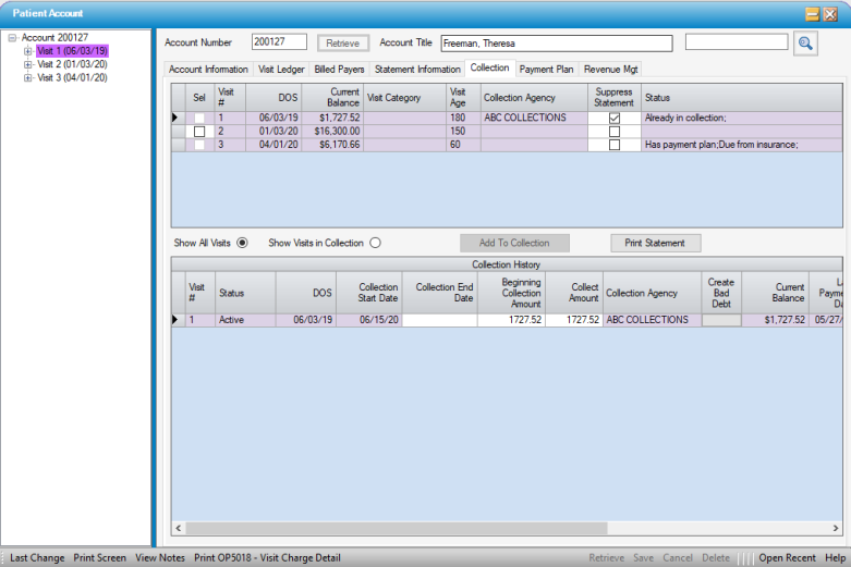 - Pull up the Patient Account and open the Collection Tab.