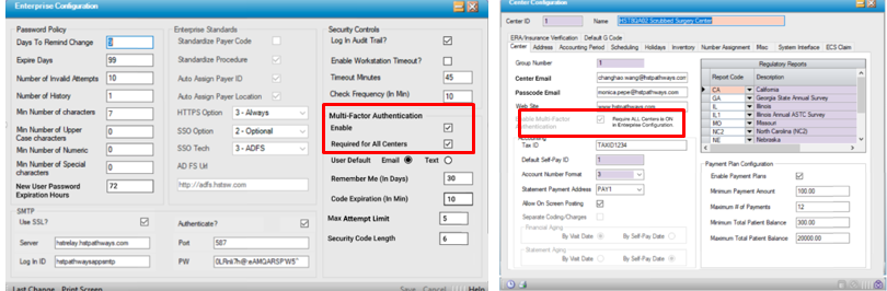 The Center/Enterprise Administrator can work with HST Support to determine the best configuration for the organization. MFA can be piloted at one Center then gradually turned on for each remaining Center over time. Once MFA has been implemented at all Centers, Required for All Centers in the Enterprise can be turned ON. This configuration would automatically opt in all centers for MFA and not allow the Center setting to be changed.