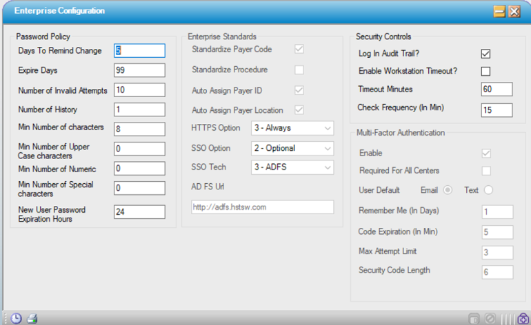 These settings are Administrative functions that must be set up by an HST Account Representative, preferably when initially creating the database.