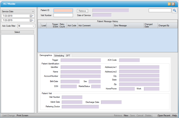 This screen provides insight into inbound HL7messages.