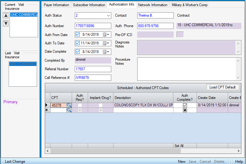 The Authorization Info tab is part of a complete Authorization process which includes the Appointment, Patient Estimator, Charge Entry, and Workflow tasks. Please click the hyperlink to review the entire process.
