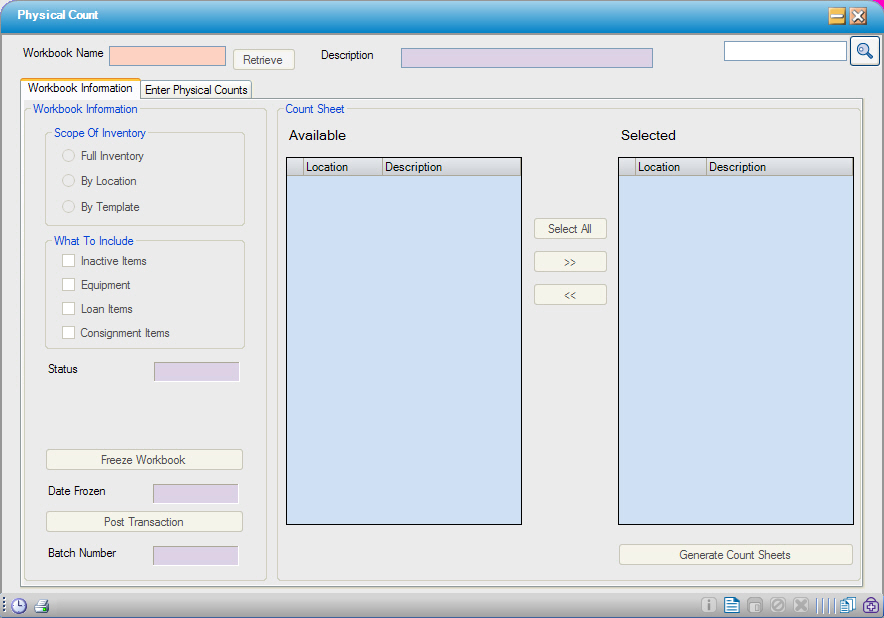 Clicking on the Freeze Workbook button, freezes inventory so that no inventory transactions can be posted until the process is complete.