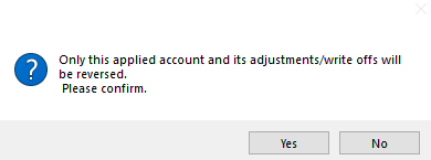 This will invoke a confirmation screen. To confirm, select yes. If the intention was not to reverse all accounts and their adjustments/write offs on a Bulk Payment, select no and no action will be taken.