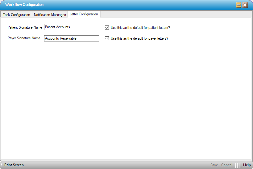 To customize the signature for letters going to the patients and those going to the payers, enter the desired Signature Name.